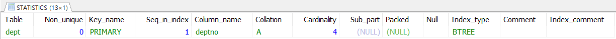 SHOW INDEX FROM dept;