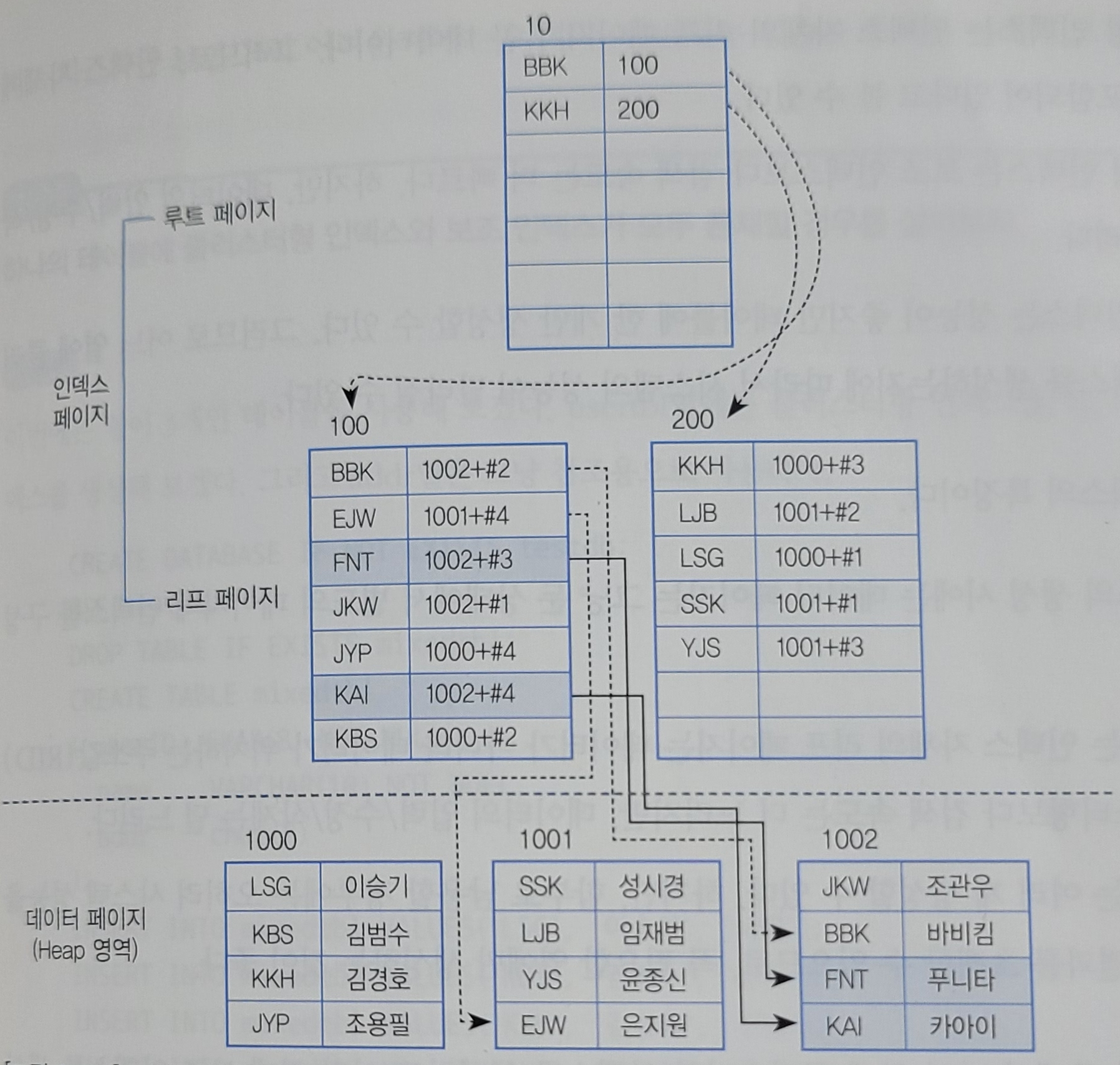2. (페이지 200 확인) '임재범'은 클러스터형 인덱스의 키 값 LJB임을 확인 후, 클러스터형 인덱스 루트 페이지 참조