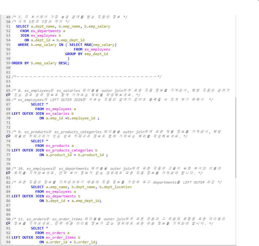 /* ex_employees에 LEFT OUTER JOIN한 이유는 직원의 급여가 없어도 출력될 수 있게 하기 위해서 */