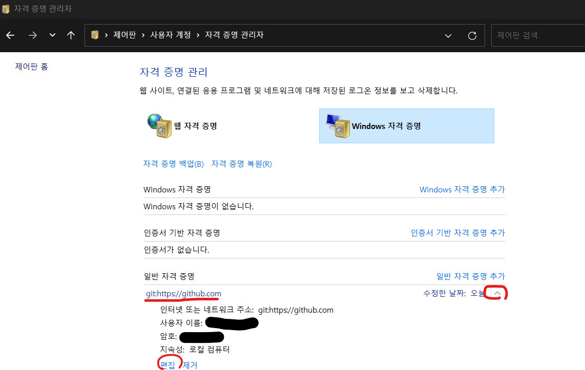 2. 자격 증명 관리자 - windows 자격 증명 관리