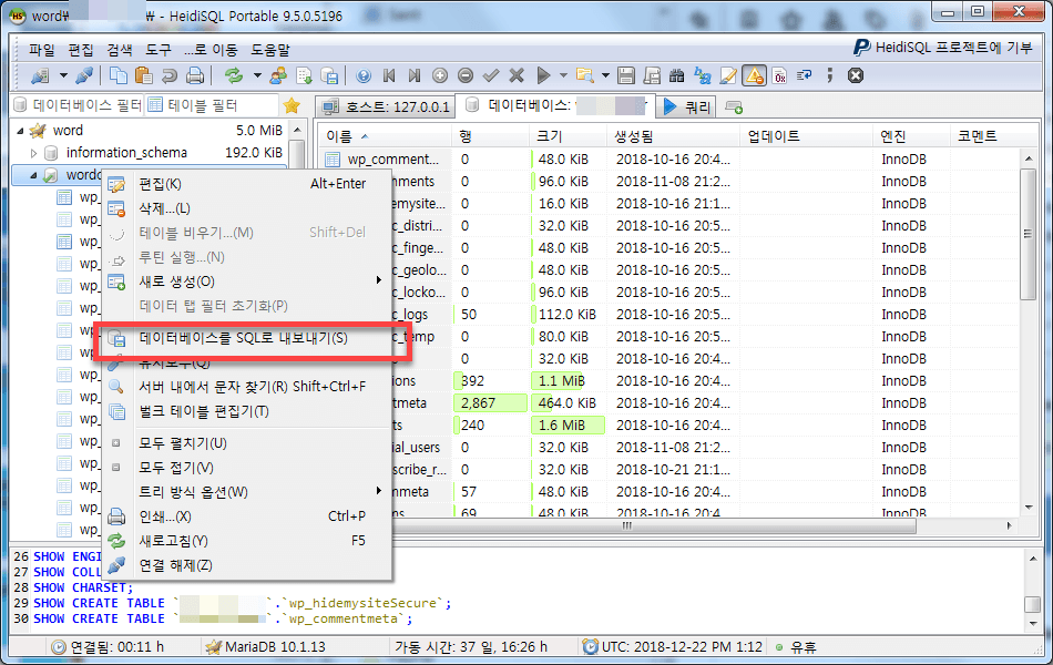 1번 참고 글 https://whitekeyboard.tistory.com/407 [HeidiSQL - (1) ] HeidiSQL으로 덤프( 데이터(DB) 백업하는 방법 ) - GUI Ver. HeidiSQL에서 DB 내보내기 DB를 내보내기(Export) 하려면 데이터베이스 이름을 마우스 오른쪽 버튼으로 클릭한 후에 데이터베이스를 SQL로 내보내기(Export database as SQL)를 클릭 그러면 DB 내보내기 설정 whitekeyboard.tistory.com 2번 참고 글 https://nect2r.tistory.com/47 [Database] HeidiSQL로 SQL파일 import 하는법 HeidiSQL이 설치가 되어있고 DB도 연결이 되어있을떄 사용할 DB를 왼쪽에서 클릭(test) 파..